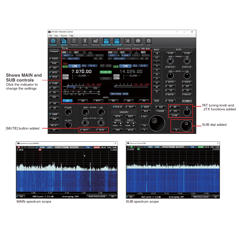 Το IC-7610 παρέχει διπλή λήψη, σε διαφορετικές μπάντες, όπως και τα πεδία φάσματος υψηλής ταχύτητας, υψηλής ανάλυσης.